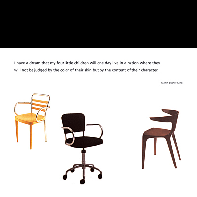 Links sind Auszüge aus einer Imagebroschüre für den Stuhlhersteller Geoffrey Drayton zu sehen.
